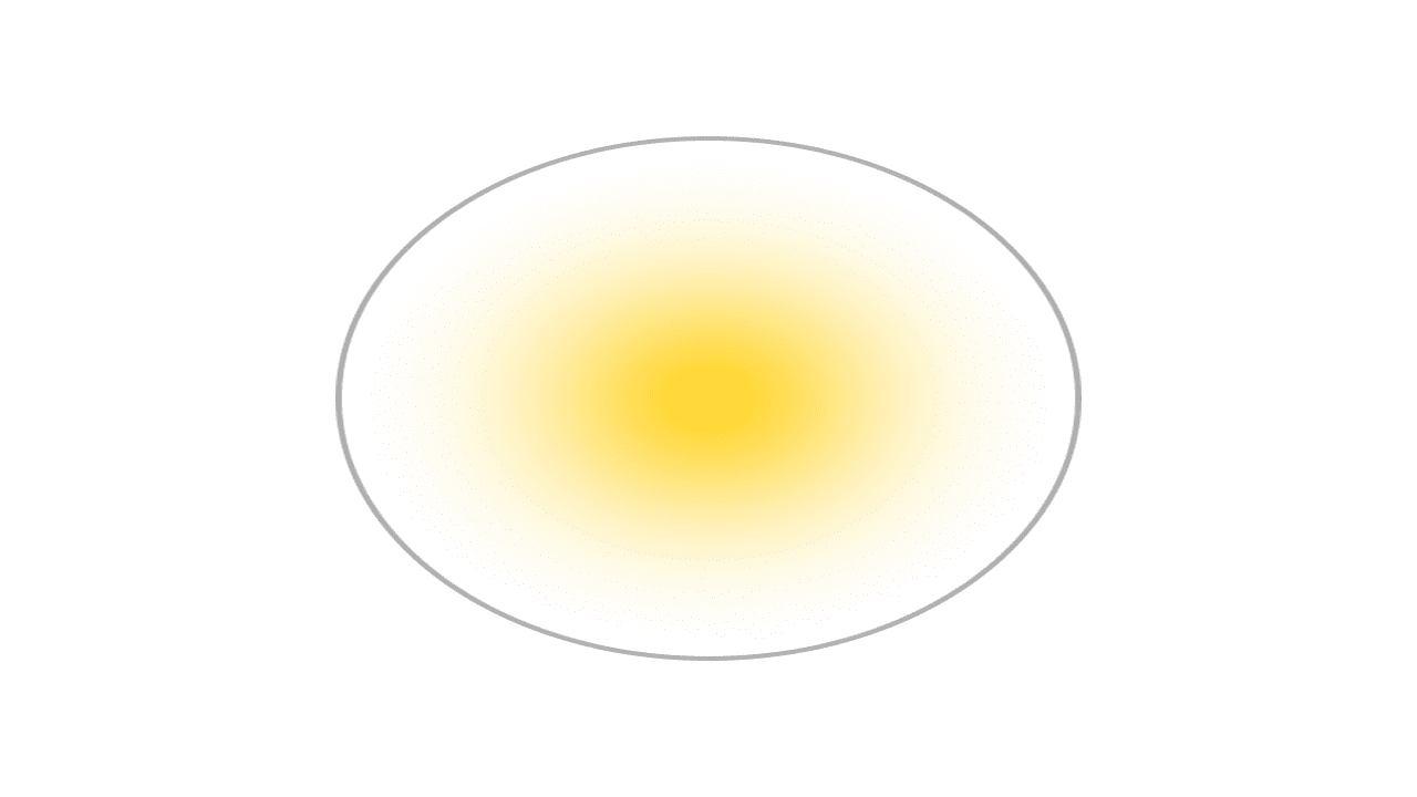 Ceci n’est pas un œuf. C’est la représentation d’un point dans le monde du Gaussian Splatting ! Ici le point est jaune et sa transparence varie selon les axes de l’ellipse en suivant des lois Gaussiennes. L’exemple est en 2D mais ça marche en 3D.
